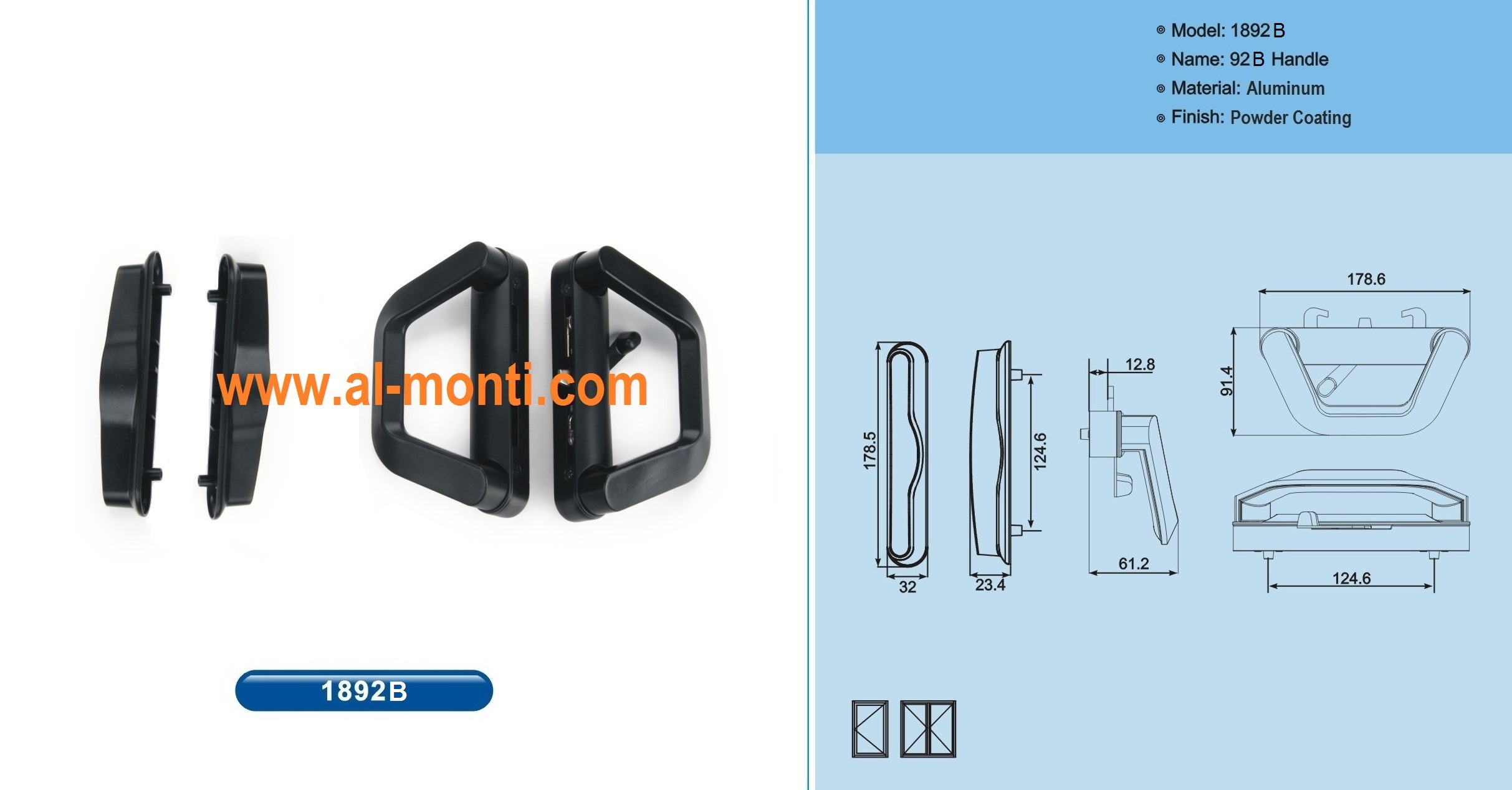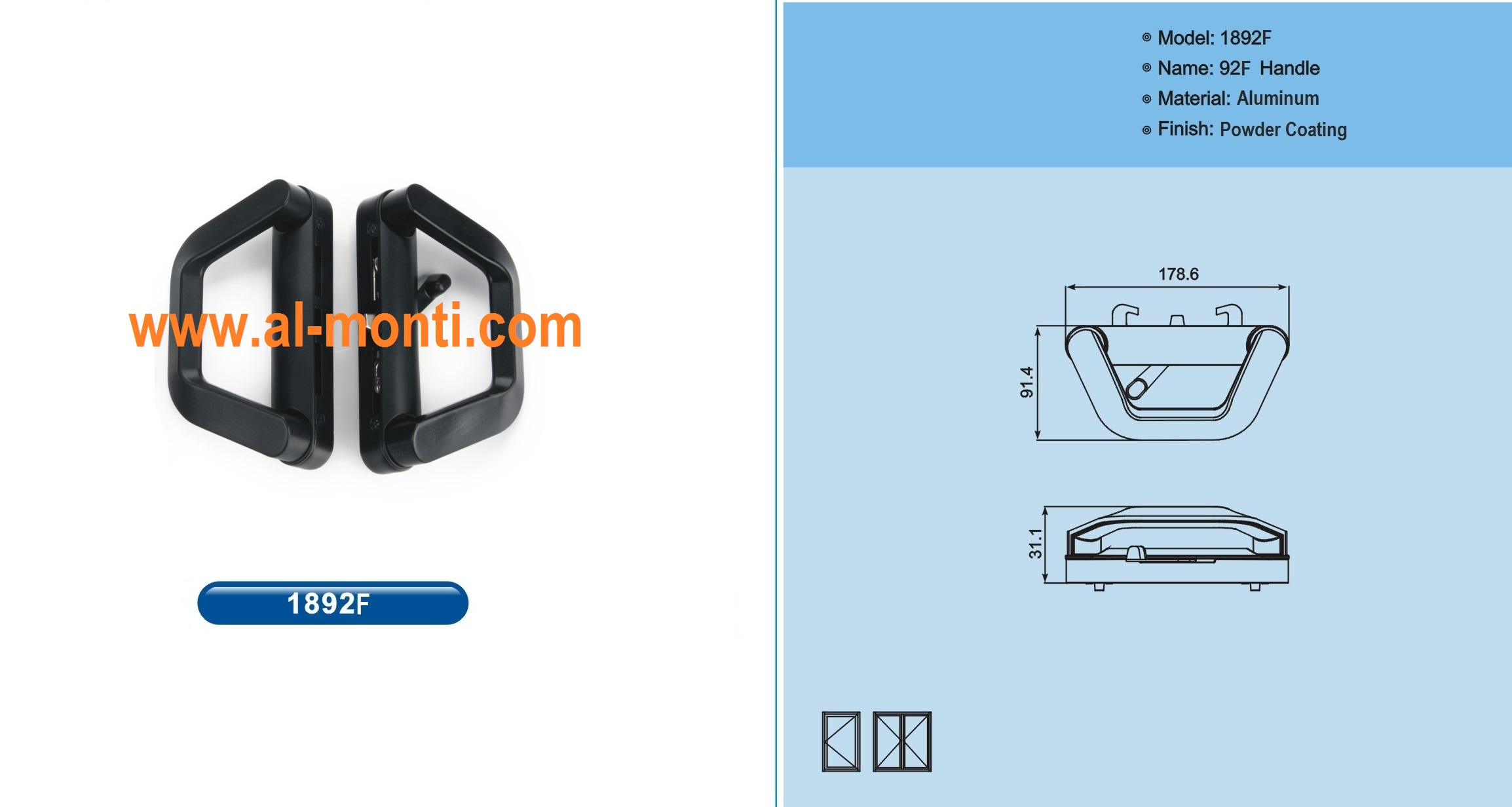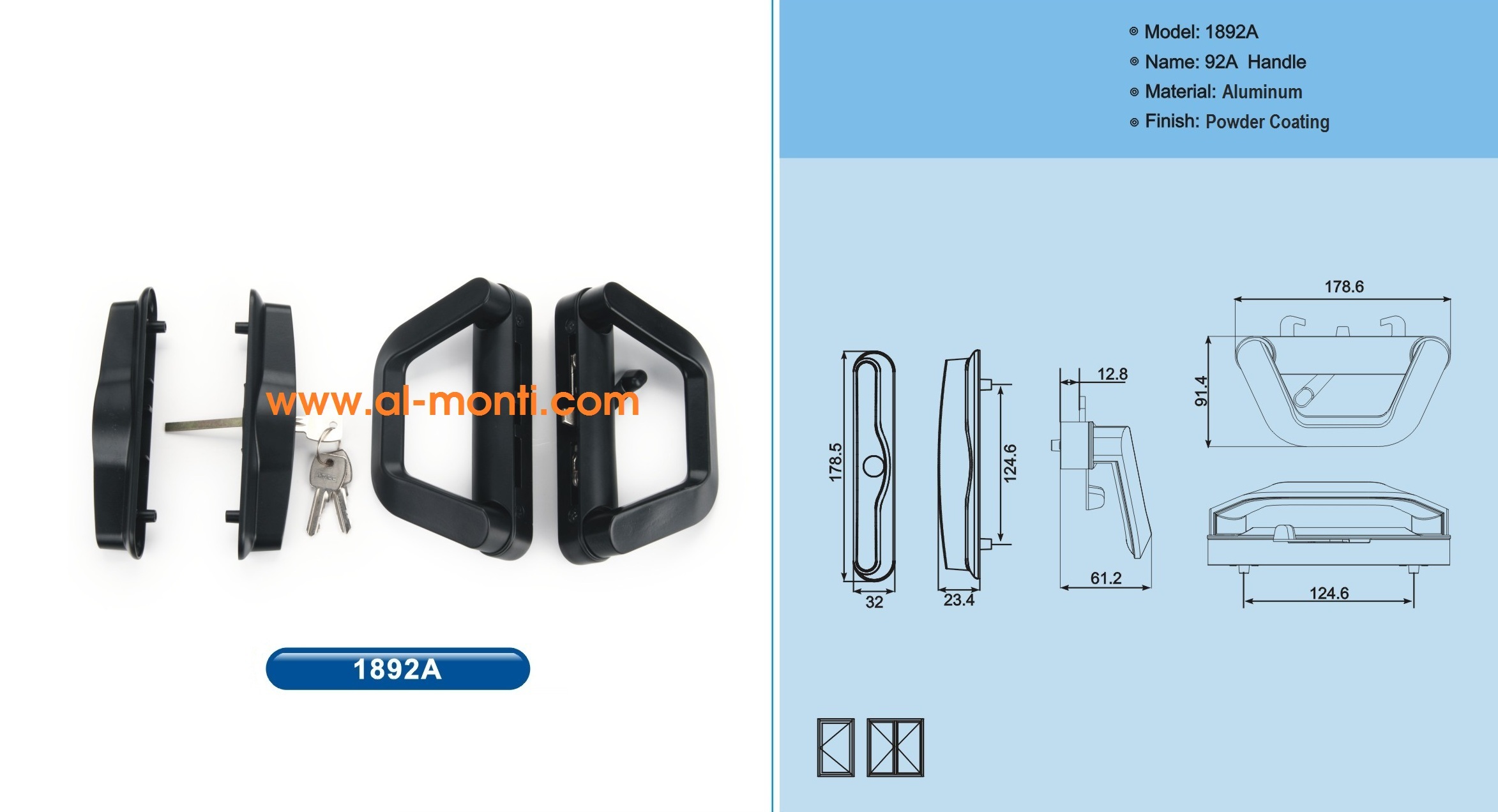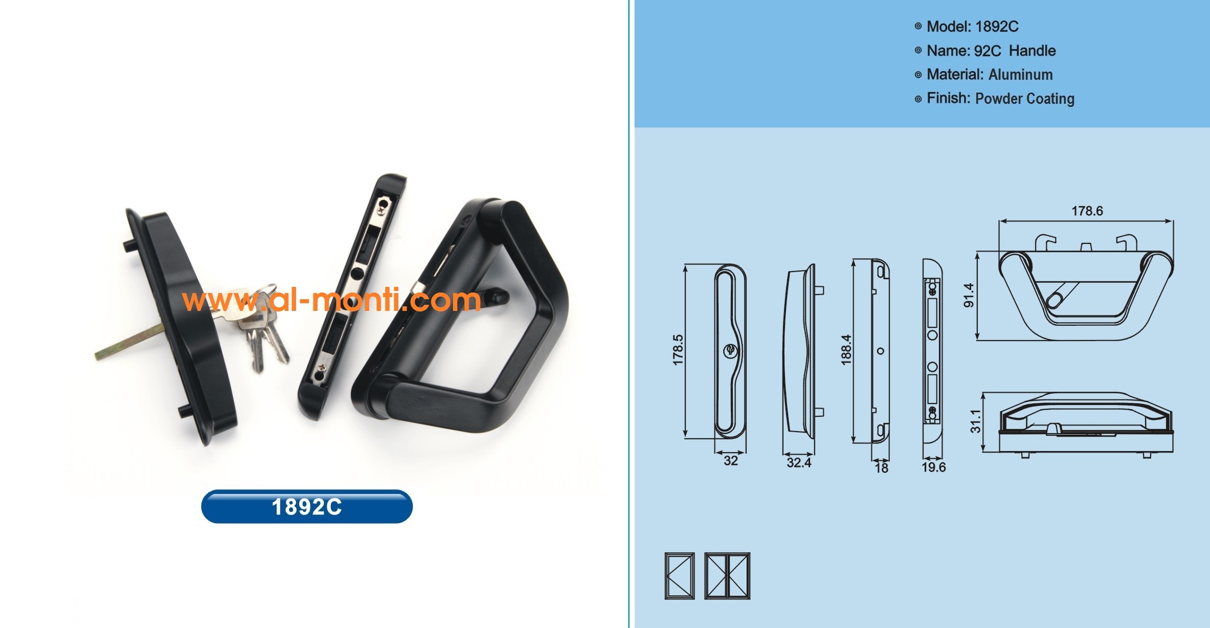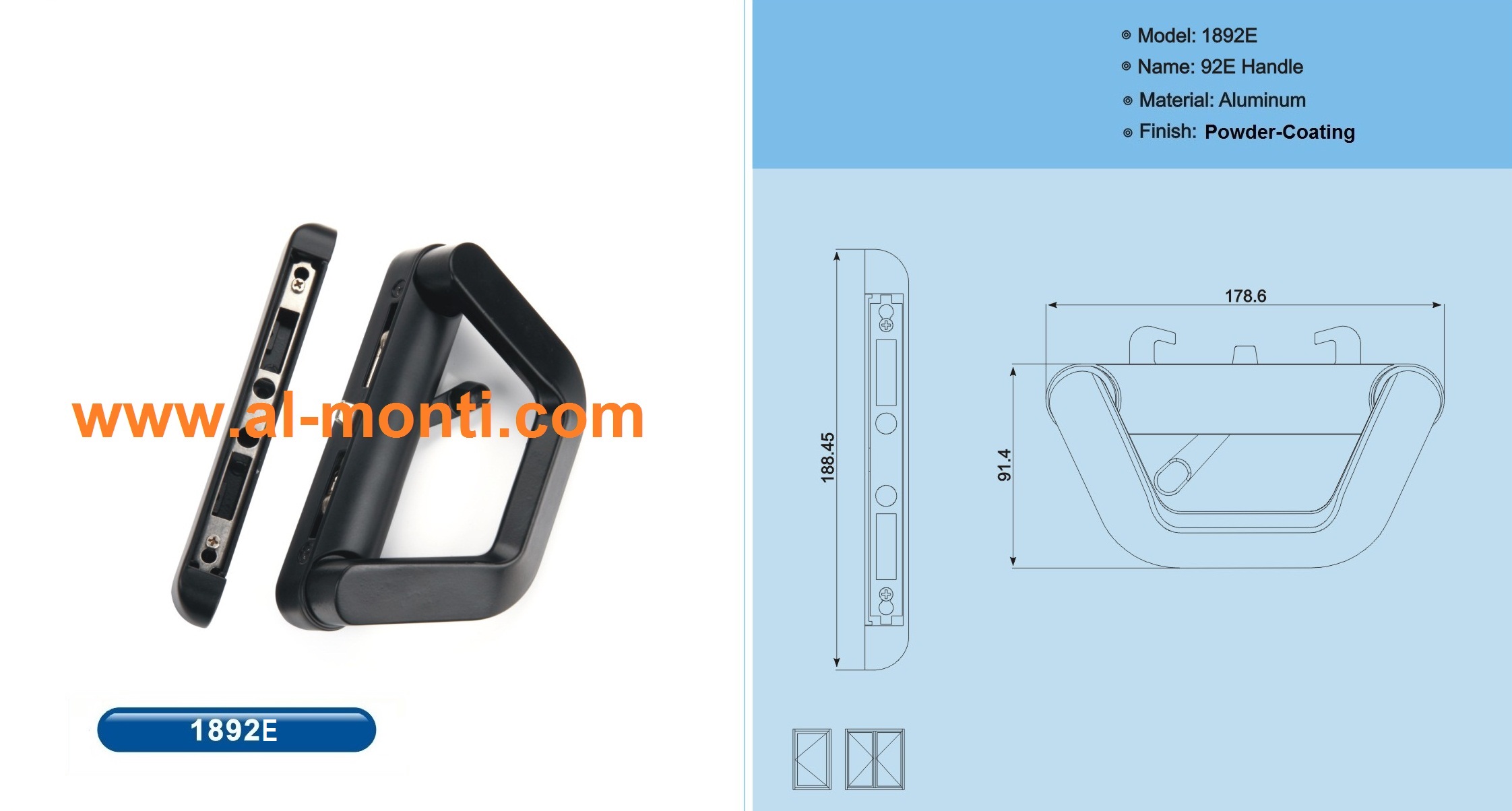 WWW.Al-Monti.COM دستگیره ها و قفل های در و پنجره آلومینیومی با تنوع مختلف برای کاربردهای مختلف، یراق آلات مونتی یراق مخصوص پنجره های دو جهت بازشو ، لولایی نرمال و ترمال برک ، کشویی و سایر برابر استانداردهای اروپایی ، آمریکایی و آسیا